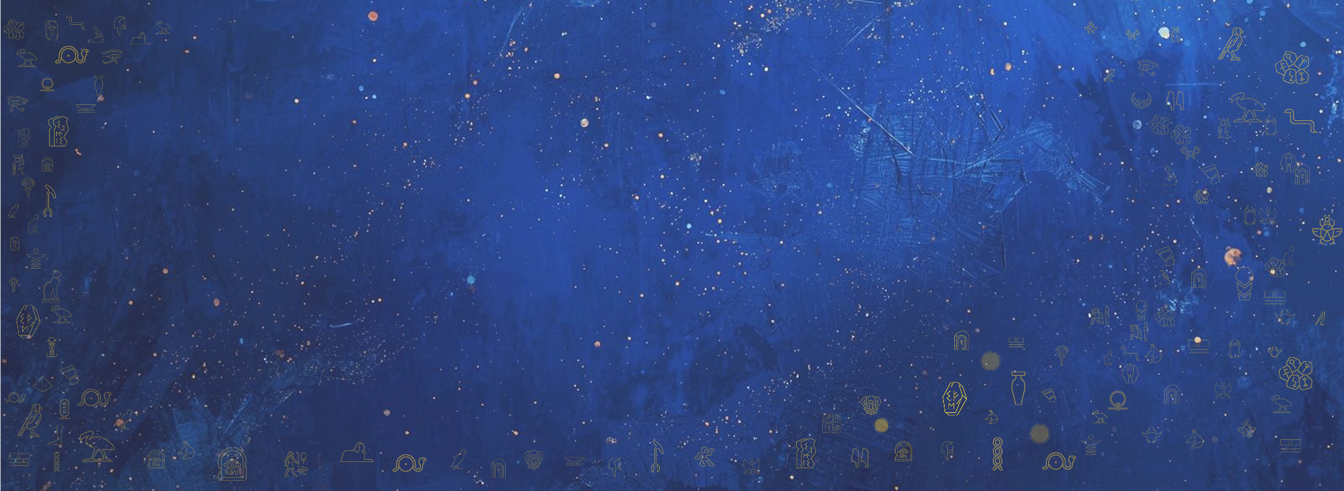 Tabby cat in Egyptian collar reaching toward a glowing orb.